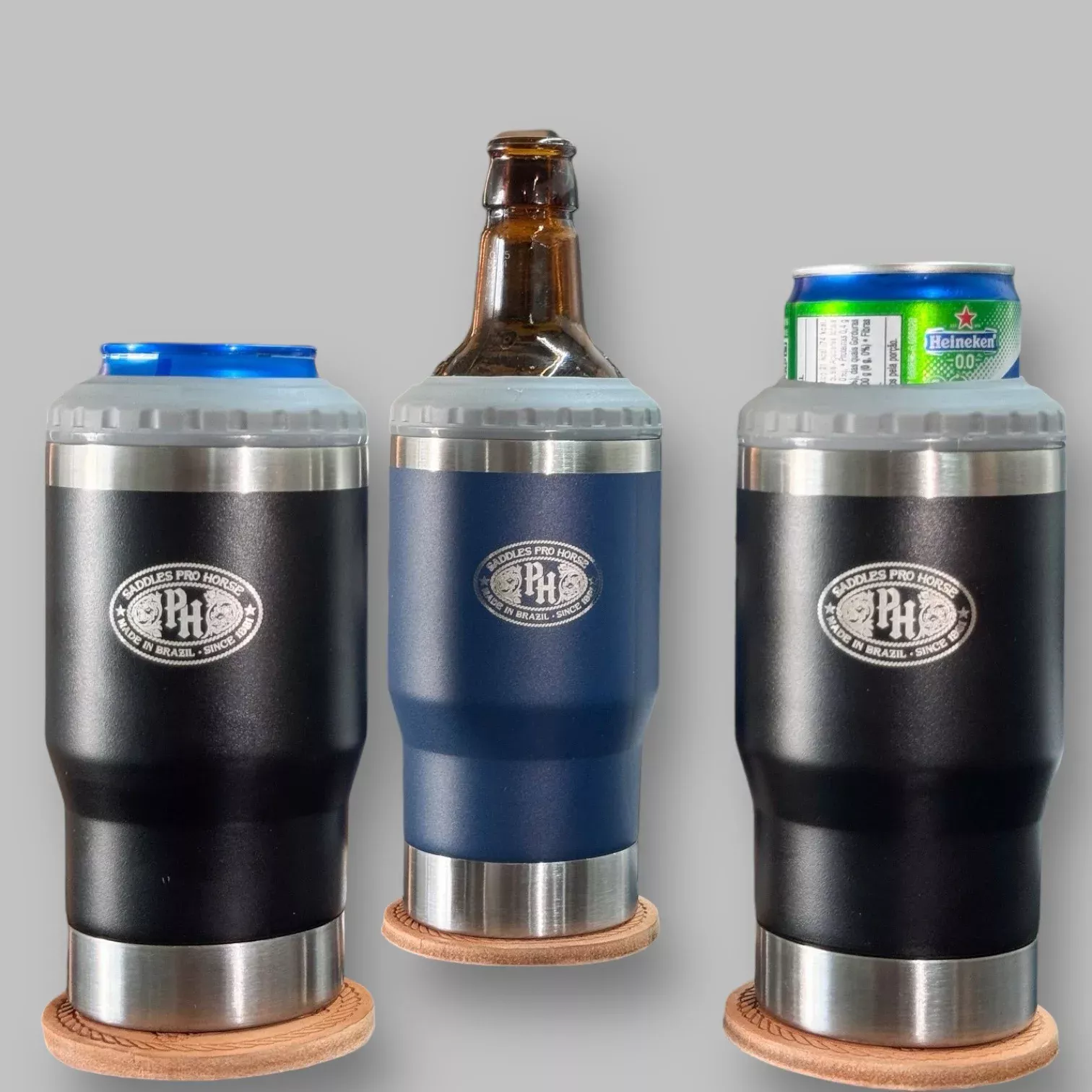✅ Versatilidade 3 em 1: Copo térmico, suporte para latas e longnecks;