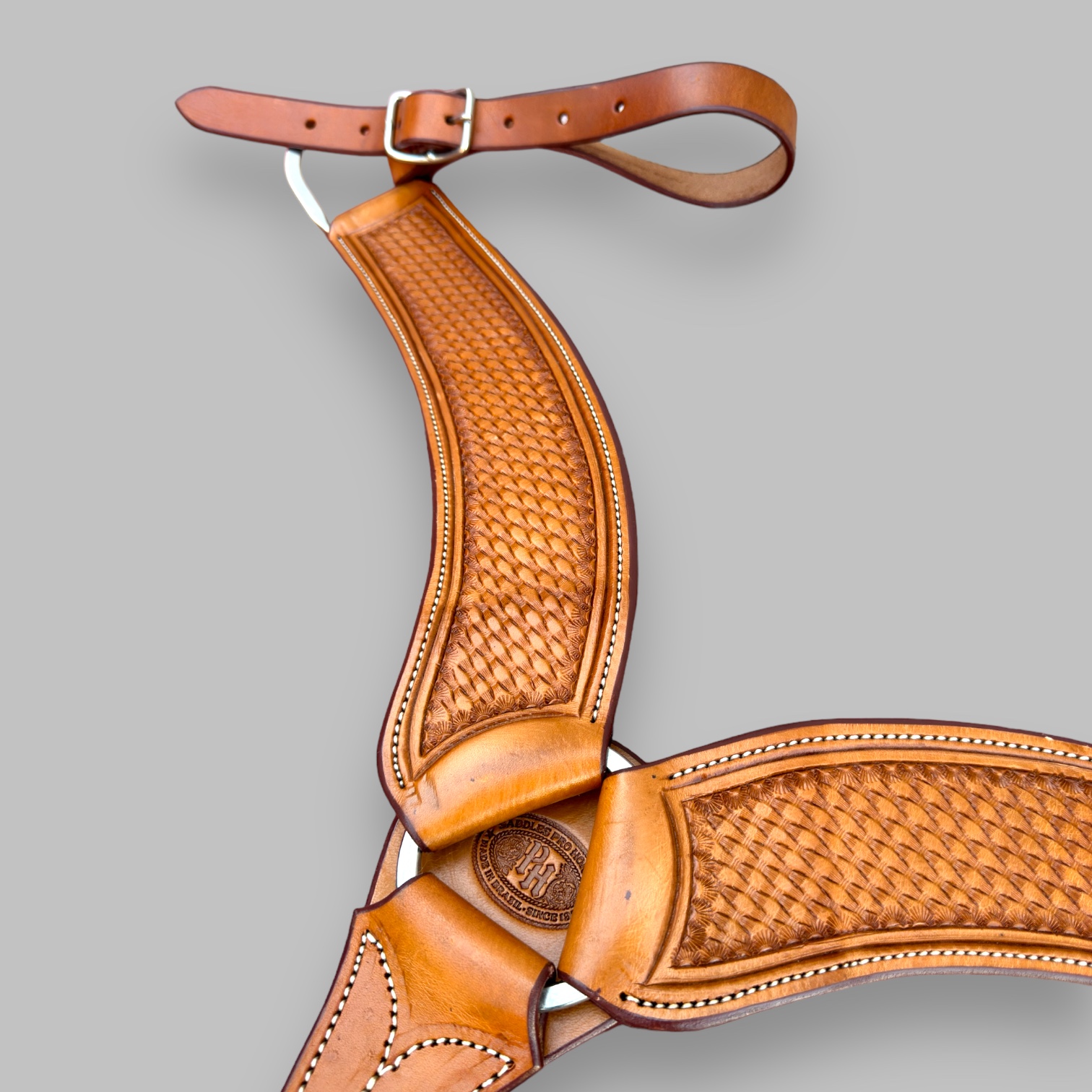 A Peiteira em Y Laço Balaiada PHPT011 é a escolha perfeita para quem busca combinar conforto e estilo rústico na montaria. Produzida em couro legítimo de alta qualidade com acabamento balaiado artesanal, essa peiteira garante resistência e durabilidade, proporcionando maior segurança e conforto ao cavalo. Seu design em Y distribui a pressão de maneira equilibrada, evitando pontos de desconforto durante o uso. Ideal para diversas modalidades equestres, é indicada para treinos, provas e passeios, mantendo o visual tradicional com um toque artesanal. Fácil de ajustar, a PHPT011 proporciona maior controle ao cavaleiro e bem-estar ao animal. Um acessório indispensável para cavaleiros que valorizam qualidade, funcionalidade e design clássico.